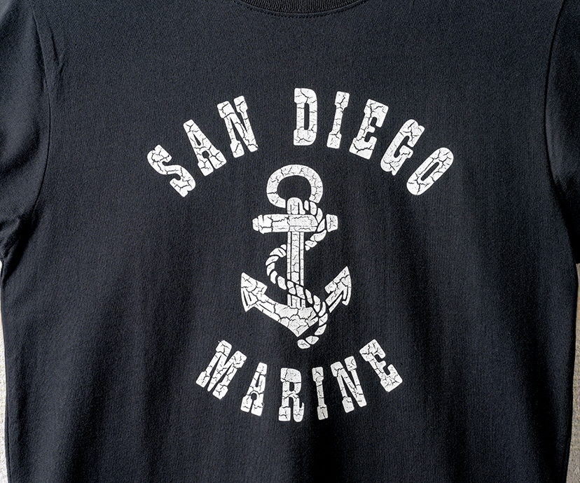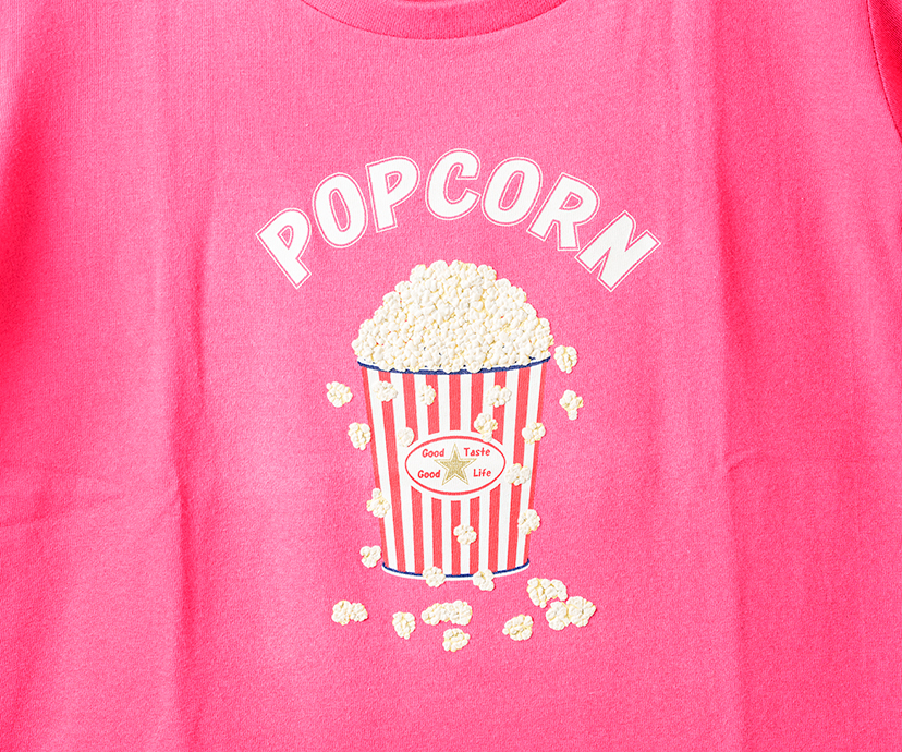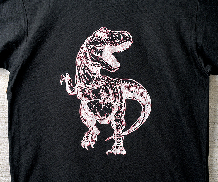 ラバーと顔料の中間にあたるプリントです。やや透けるので古着っぽい仕上がりを希望する際に使われたりもします。ラバーより柔ら...