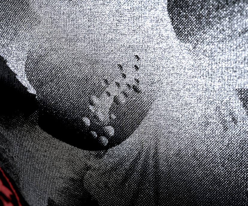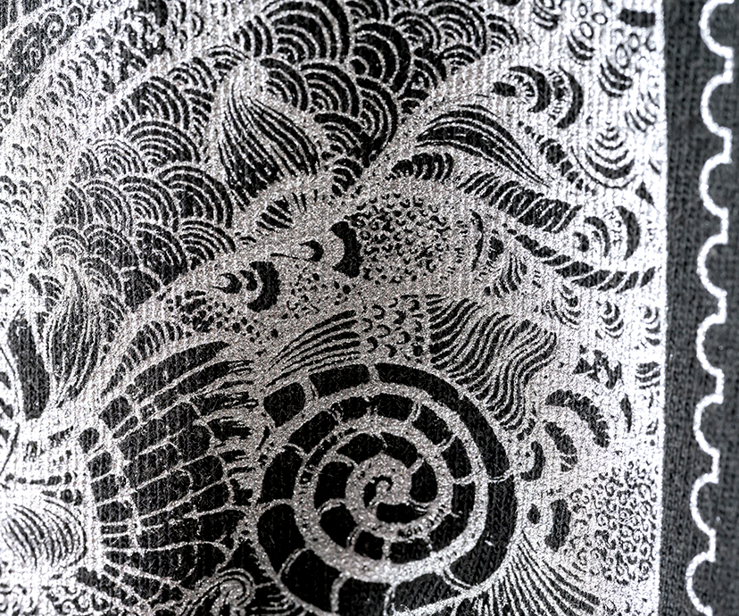 スクリーンプリント メタリックプリント インクにアルミの粉を混ぜ込んでプリントします。グリッターより粒子が細かいのでより繊細な柄にも使用することが出来ます。着色もできるので好みのメタリックカラーに調整可能です。 ◀ カラー分解プリントグリッタープリント ▶ このカテゴリーのトップに戻る