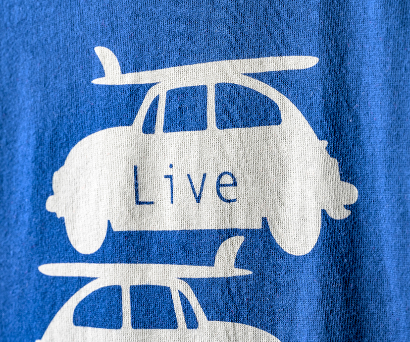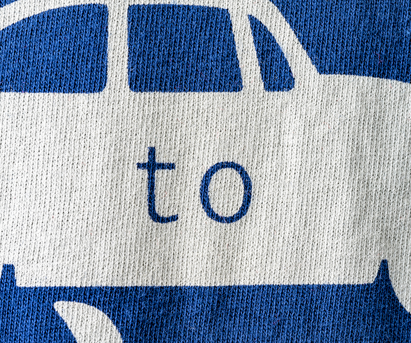 抜染剤を用いて生地の染料の色を抜くプリントです。同時に着色することもできます。濃色地で風合いを損なわないのが一番の特徴です。風合いを気にされる場合の濃色生地への綺麗な発色や、白抜による柄の表現に使用します。※この加工は、発色をさせるため生地染めの段階で、あらかじめ抜染条件に適した染色が必要になります。