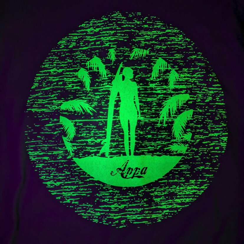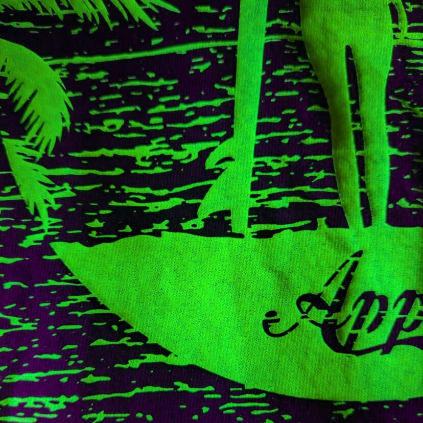 インクの中に蓄光剤を混ぜています。明るいときに光を蓄え、暗くなった際に自ら発光するプリントです。