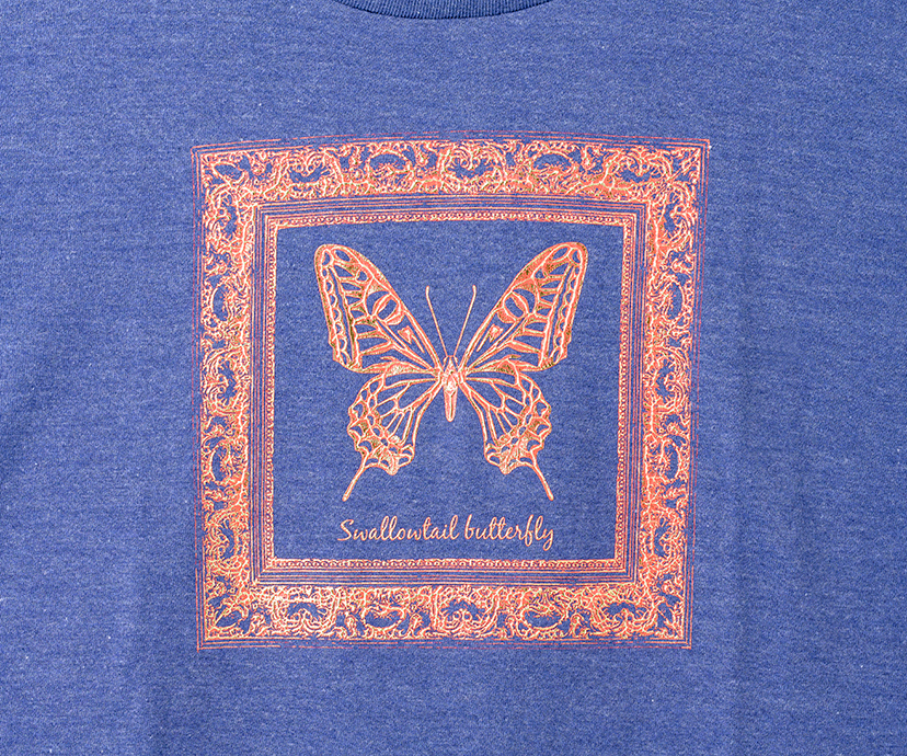 箔特有の滑らかさと光沢があり、美しく高級感のあるプリントです。レディースで良く好まれて使われています。